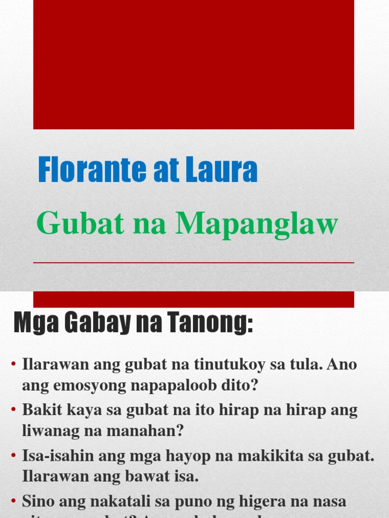April 2022 Gubat na Mapanglaw English. Isulat sa sagutang papel ang bilang ng iyong sagot. Katangian ng isang gubat na mapanglaw at dito rin magsisimula ang kwento ng matamis na pag-iibigan nila Florante at Laura.